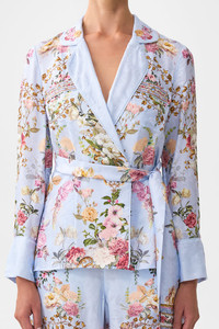 The Tiled In Time Pyjama Suit Jacket is a handcrafted silhouette designed by our in house artisans. Reimagined in an exclusive limited edition print, our suit jacket is relaxed fitting and features a button front closure for effortless wear. It's decorated with a detachable tie and chest pocket details for versatility. - Relaxed Fit - Detachable Tie - Button Front Closure - Chest Pockets SKU 00039473-TILETIME-XXS Size and Fit Our model is 5'10 (178cm) tall and wears a size S (AU 10). Bust: 40in (101.6cm) Waist: 26.5in (67cm) Hips: 38in (96.5cm) Fabric and Care 70% VISCOSE 30% SILK