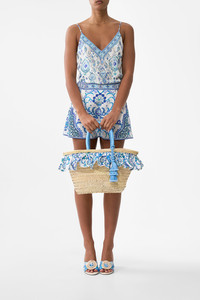 The Isnik Lullaby Raffia Tote With Frill Edge is a handcrafted accessory designed by our in house artisans. Reimagined in an exclusive limited edition print, our raffia tote features a printed internal drawstring pouch, internal zip pocket and contrast rope handles for textural intrigue. Finished with frill edging, beaded tassels and bespoke charms, a joyful carryall woven with artisanal detail. - 100% Raffia - Printed Internal Drawstring Pouch - Internal Zip Pocket - Contrast Rope Handle And Drawcord - Beaded Tassels - Custom Design Charms - Height 25cm, Width 40cm, Base 15cm, Handle Drop 18cm SKU 00037608-ISNILULL-O/S Size and Fit Our model wears a CAMILLA O/S and is 5'10 (178cm) tall. Her standard dress size is an AU 10. She has a 32in (83cm) bust, 35in (89.5cm) hips and a 25in (66cm) waist. Fabric and Care MAIN: 100% RAFFIA