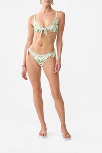 Designed in Australia, The Venus On A Vespa Reversible Tie Bikini Set exudes placid blue skies amid ornate archways and gilded borders, a collection reimagining intricate illustrations by Lezio Lopez. Lovingly handcrafted, this luscious bikini set offers versatile elegance. Designed for A-C cups, it features adjustable ties and a soft cup bra, with cheeky coverage for a playful yet sophisticated style. - Fits A-C Cup - Reversible Style - Adjustable Ties At Front Bras And Side Pant - Soft Cup Bra - Cheeky Coverage - No Crystals - ECONYL® swim SKU 00038004-SICILYSL-XS Size and Fit Designed and fitted true to size, take your normal size Fabric and Care MAIN: 82% REGENERATED POLYAMIDE, 18% ELASTANE ECONYL® is regenerated nylon, crafted from waste materials that would otherwise end up polluting our Mother Earth. Its beauty lies in its ability to be recycled, remoulded and ultimately reused time and time again. An infinitely recyclable product that keeps our planet looking beautiful, it opens the door to a circular fashion sphere.