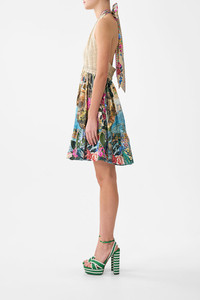 The Bodrum Botanicals Ruffle Hem Halter Short Dress is a handcrafted silhouette designed by our in house artisans. Reimagined in an exclusive limited edition print, our backless mini dress features adjustable halter neck ties and an elasticated back bodice as the full skirt is finished with a ruffled hemline. - 100% Organic Cotton - Adjustable Halter Tie - Backless - Full Skirt With Hem Frill - Elasticated Back Bodice - Centre Back Zipper - Crystal Embellishment SKU 00038879-BODRBOTA-XXS Size and Fit Our model is 5'10 (178cm) tall and wears a size S (AU 10). Bust: 40in (101.6cm) Waist: 26.5in (67cm) Hips: 38in (96.5cm) Designed and fitted true to size, take your normal size. Fabric and Care 100% ORGANIC COTTON Organic cotton poplin is sumptuously smooth with a crisp, refined weave. This lightweight silken fabric drapes beautifully and is ideal for sleek contours and tailored, defined styles.