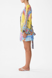 The Sultanahmet Summer Short Kimono Wrap is a handcrafted linen silhouette designed by our in house artisans. Reimagined in an exclusive limited edition print, our short kimono wrap is cut in a relaxed fit with generous sleeves and side splits for ease of movement. Intentionally crafted for versatility and layering, it features a separate tie belt for effortless wear, while intricately placed crystal embellishments add luminous detail.. - 100% Linen - Relaxed Fit - Short Length - Wide Sleeve - Side Splits - Separate Tie Belt - Crystal Embellishment SKU 00038566-SULTSUMM-XS Size and Fit Our model is 5'10 (178cm) tall and wears a size S (AU 10). Bust: 40in (101.6cm) Waist: 26.5in (67cm) Hips: 38in (96.5cm) Designed and fitted true to size, take your normal size. Fabric and Care 100% LINEN Made from flax fibres, this lightweight natural fibre offers a timeless aesthetic that adds durability and longevity to any wardrobe. Its breathability keeps your skin cool, minimises moisture and ensures effortless comfort.