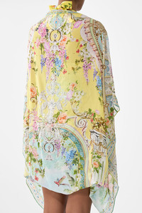 The Tales Of Topkapi Palace Silk Chiffon Shrug is a handcrafted silk silhouette designed by our in house artisans. Reimagined in an exclusive limited edition print, our lightweight silk shrug is crafted with wide sleeves for a fluid, relaxed fit. Ornamented with an intricately applied crystal amulet along the neckline. - 100% Silk - Camilla Printed - Crystal Amulet - Wide Arm Holes For Relaxed Fit - Width 130cm SKU 00037649-TALETOPI-O/S Size and Fit Our model wears a CAMILLA O/S and is 5'10 (178cm) tall. Her standard dress size is an AU 10. She has a 32in (83cm) bust, 35in (89.5cm) hips and a 25in (66cm) waist. Fabric and Care MAIN: 100% SILK A featherlight, sheer, material renowned for its delicate flow and graceful drape, silk flat chiffon creates a softly cascading silhouette with a subtle lustre.