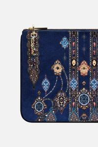 The The Imperial Gate Small Canvas Clutch is a handcrafted silhouette designed by our in house artisans. Reimagined in an exclusive limited edition print, meticulous artisan detail meets our signature canvas clutch as finishings incorporate contrast piped edges, meticulously placed crystal embellishments, zip top enclosure and a custom made parrot clip. Internal pocket and generous main compartment keep treasures stored in style. - Crystals - Removable Charm With Parrot Clip - Internal Pocket - Piped Edge - 26cm X 18.5cm SKU 00037525-IMPEGATE-O/S Size and Fit Our model wears a CAMILLA O/S and is 5'10 (178cm) tall. Her standard dress size is an AU 10. She has a 32in (83cm) bust, 35in (89.5cm) hips and a 25in (66cm) waist. Fabric and Care MAIN: 100% POLYESTER