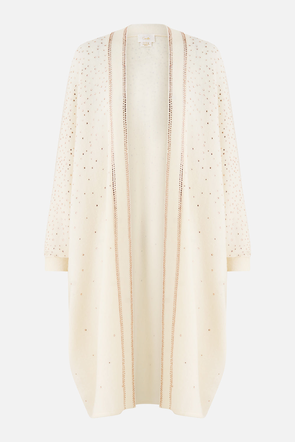 The East Of Istanbul Soft Knit Layer is a handcrafted merino wool silhouette designed by our in house artisans. Reimagined in an exclusive limited edition print, our soft knit layer is a relaxed, fully fashioned knit that drapes the body and falls to a shaped hemline. This decadent layering piece blends comfort with luxury and is finished with intricately placed crystal embellishments. - Relaxed Fit - Crystal Embellishment - Shaped Hem - Fully Fashioned Knit SKU 00039487-EASTISTA-O/S Size and Fit Our model wears a CAMILLA O/S and is 5'10 (178cm) tall. Her standard dress size is an AU 10. She has a 32in (83cm) bust, 35in (89.5cm) hips and a 25in (66cm) waist. Designed as a relaxed fit. Take your normal size, or select one size smaller for a neater fit. Fabric and Care 10%BABY ALPACA 25% WOOL 20%ACRYLIC 45% NYLON