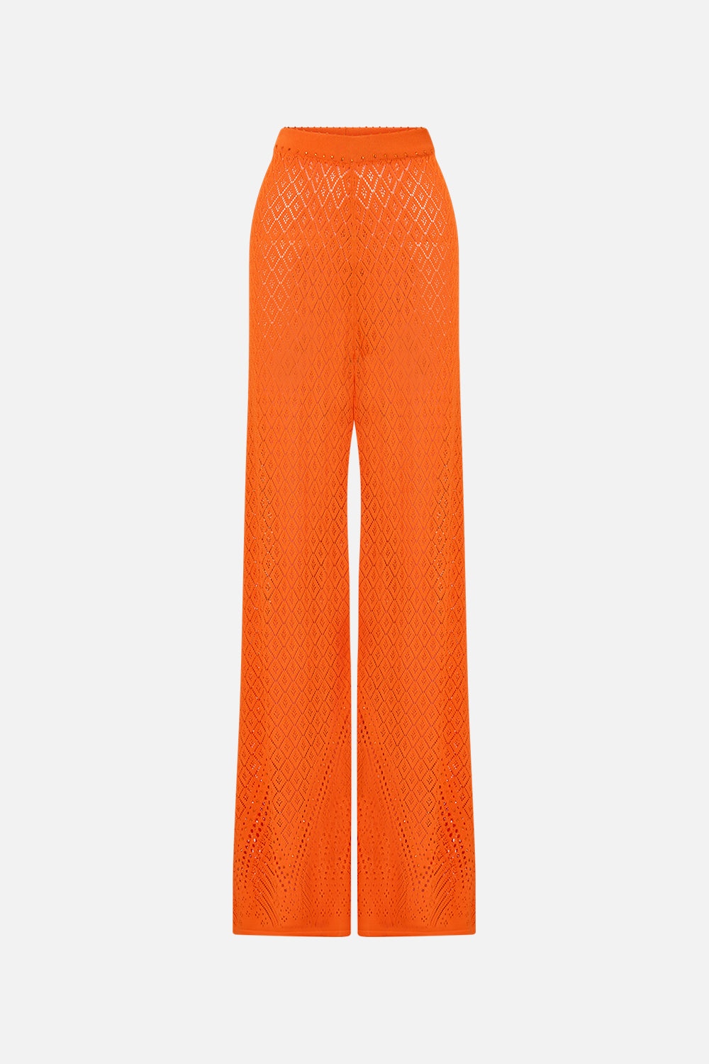 Designed in Australia, the Basked In Baroque Wide Flare Knit Pant celebrates the vivid contrasts of Igreja Matriz De Santa Maria. Painterly prints reflect its dynamic artistry, steeped in timeless energy and colour. Lovingly handcrafted, these wide flare knit pants feature a relaxed fit and high-rise waistband. Pointelle knit and crystal embellishments elevate the style, adding a refined touch to the cozy design. - Relaxed Fit - High Rise Waistband - Pointelle Knit - Crystal Embellishment SKU 00035531-BASKBARO-S Size and Fit Our model wears a CAMILLA S and is 5'10 (178cm) tall. Her standard dress size is an AU 10. She has a 32in (83cm) bust, 35in (89.5cm) hips and a 25in (66cm) waist. Camilla S = AU10 / UK10 / US6 Fabric and Care 80% RECYCLED VISCOSE 20% NYLON