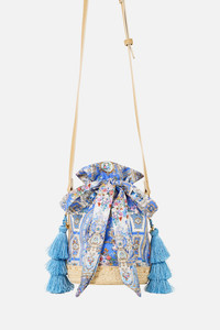 The Ottoman Opulence Tie Top Bucket Bag With Tassels is a handcrafted accessory designed by our in house artisans. Reimagined in an exclusive limited edition print, woven upon a raffia base, this playful bucket bag cinches with a tie-up top and is adorned with CAMILLA-printed tassels. Its complete with a detachable crossbody strap for versatile wear. - 100% Silk - Tie Up Top - Raffia Base - Detachable Crossbody Strap - Tassel Feature - Printed Camilla - 26cm X 15cm - Strap Drop = 56cm SKU 00039299-OTTOOPPU-O/S Size and Fit Our model wears a CAMILLA O/S and is 5'10 (178cm) tall. Her standard dress size is an AU 10. She has a 32in (83cm) bust, 35in (89.5cm) hips and a 25in (66cm) waist. Fabric and Care MAIN: 100% SILK