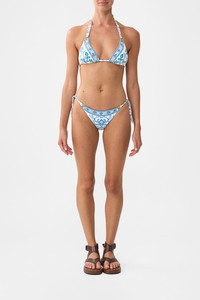 The Isnik Lullaby Triangle Bikini Set With Tie Sides And Ring Trims is a handcrafted silhouette designed by our in house artisans. Reimagined in an exclusive limited edition print, our bikini set is made with B-C cups in mind. The top comes complete with soft removable cup and ties at the neck and back for adjustable support. The bottoms feature moderate to cheeky coverage with tie sides and a regular leg rise. Finished with silver ring trims and crystal embellishment, this set is a sun-ready statement with radiant detail. - To Fit B-C Cup - Removable Soft Cups - Moderate To Cheeky Bottom Coverage, Regular Leg Rise, Regular Waist - Tie Neck And Tie Back Bikini Top, Tie Side Pant - Small Silver Ring Detail On Top Apex And Bottom Tie Sides - Crystal Embellishment, SKU 00037505-ISNILULL-XS Fabric and Care MAIN: 82% REGENERATED POLYAMIDE, 18% ELASTANE ECONYLÆ is regenerated nylon, crafted from waste materials that would otherwise end up polluting our Mother Earth. Its beauty lies in its ability to be recycled, remoulded and ultimately reused time and time again. An infinitely recyclable product that keeps our planet looking beautiful, it opens the door to a circular fashion sphere.