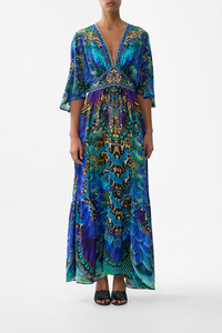 The Cosmic Zoology Waisted Dress With Hem Ruffle is a handcrafted silk silhouette designed by our in house artisans. Reimagined in an exclusive limited edition print, our full length ruffle hem dress is fitted at the waist and drops into a flared skirt. Shaped sleeves and side seam pockets finish this ode to the feminine form. - 100% Silk - Fitted At Waist With Flared Skirt - Full Length - Side Seam Pockets - Shaped Sleeves SKU 00037008-COSMZOOY-XXS Size and Fit Our model is 5'10 (178cm) tall and wears a size S (AU 10). Bust: 40in (101.6cm) Waist: 26.5in (67cm) Hips: 38in (96.5cm) Fabric and Care 100% SILK With its subtly textured surface, silk crepe is our core fabrication made perfect for versatile wear. With its ability to hold alternative ways to wear, this decadent fabric drapes elegantly off the body whilst keeping you cool with its breathable nature.