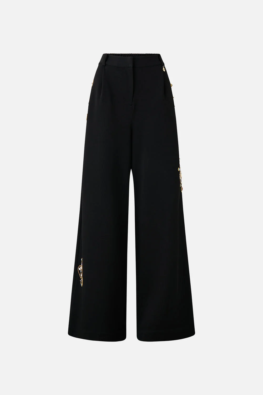 The Amulets And Alchemy Wide Leg Waisted Pant is a handcrafted silhouette designed by our in house artisans. Reimagined in an exclusive limited edition print, our wide leg pant features a fitted waistband and shirring details for a bespoke, yet effortless cut. It's finished with intricately placed crystal embellishment. - Wide Leg - Waistband - Elasticated Back - Fly Front - Hotfix Embellishment SKU 00038722-AMULALCH-XS Size and Fit Our model is 5'10 (178cm) tall and wears a size S (AU 10). Bust: 40in (101.6cm) Waist: 26.5in (67cm) Hips: 38in (96.5cm) Designed as a relaxed fit. Take your normal size, or select one size smaller for a neater fit. Fabric and Care 64% RAYON 31% POLYESTER 5% ELASTANE