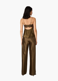 BUTTERY SOFT SILK A REFINED WARDROBE ESSENTIAL WITH SCULPTED LINES AND MODERN EASE, THE ZOIE BUSTIER CAMISOLE IN GREEN BALANCES STRUCTURED TAILORING WITH EFFORTLESS WEARABILITY. DESIGNED WITH A FLATTERING BUSTIER-INSPIRED SILHOUETTE, THIS CAMISOLE FEATURES CLEAN SEAM DETAILING AND A SMOOTH FABRICATION WITH SUBTLE STRETCH FOR A CONTOURED YET COMFORTABLE FIT. THE STREAMLINED NECKLINE AND SLEEK PROFILE CREATE A POLISHED LOOK THAT FEELS ELEVATED WITHOUT BEING RESTRICTIVE. THE ZOIE CAMISOLE TRANSITIONS SEAMLESSLY FROM DAY TO NIGHT. STYLE IT WITH TAILORED TROUSERS FOR A REFINED FINISH, PAIR IT WITH DENIM FOR UNDERSTATED EVERYDAY POLISH, OR LAYER IT UNDER BLAZERS AND KNITS FOR CHIC, SEASONLESS STYLING. PRODUCT FIT TRUE TO SIZE MODEL WEARS SIZE 0 AND IS 5'9 FABRIC & CARE SILK SANDWASH CHARMEUSE / LACE; 100% SILK / 100% NYLON DRY CLEAN ONLY IMPORTED
