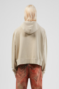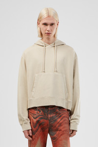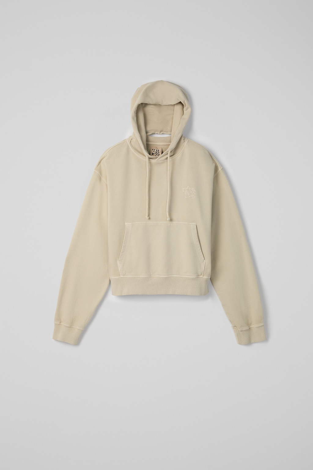 Beige hoodie in 100% mineral-dyed organic cotton with cut-out detail at back. Features Material 100% Organic Cotton Color Beige Features Cropped length Drawstring hood Pouch pocket Tonal logo embroidery at chest Size and Fit Unisex For a more cropped look, size down. Male model is 191 cm and wearing size M Female model is 178 cm and wearing size S