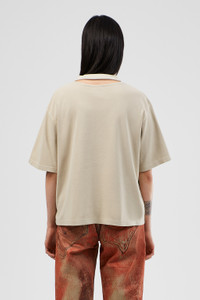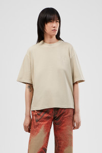 Beige mineral-dyed 100% organic cotton T-shirt with cut-out neck detail at back. Features Material 100% Organic Cotton Color Beige Features Cropped length Tonal logo embroidery at chest Size and Fit Unisex For a more cropped look, size down. Male model is 191 cm and wearing size M Female model is 178 cm and wearing size S