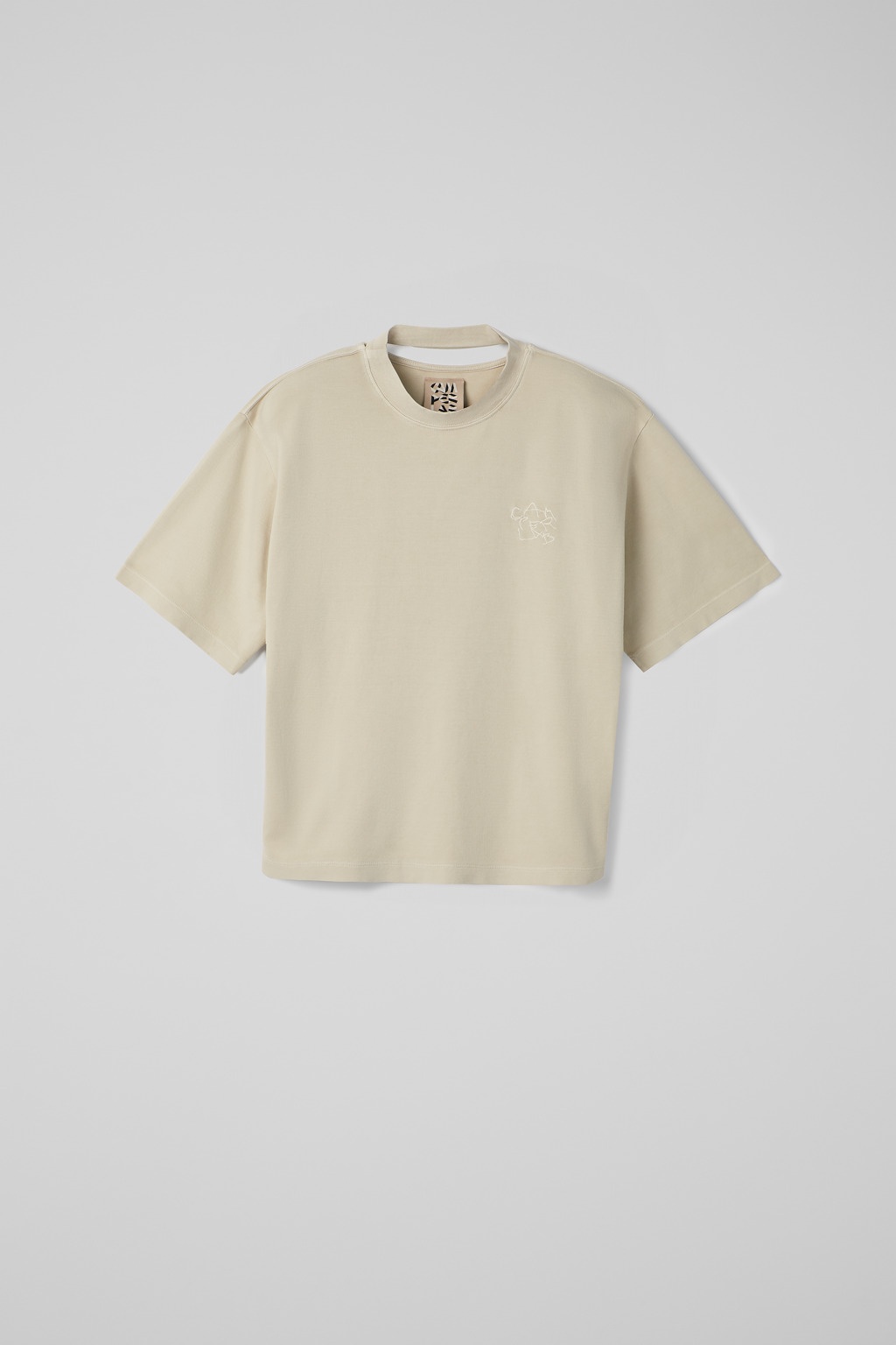 Beige mineral-dyed 100% organic cotton T-shirt with cut-out neck detail at back. Features Material 100% Organic Cotton Color Beige Features Cropped length Tonal logo embroidery at chest Size and Fit Unisex For a more cropped look, size down. Male model is 191 cm and wearing size M Female model is 178 cm and wearing size S