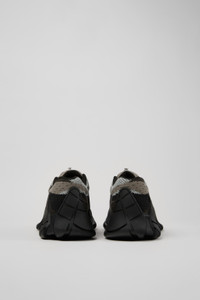 Black-gray sneakers with TENCEL™ Lyocell uppers featuring distorted print, recycled PET laces with drawstring closure, sugarcane EVA midsoles, OrthoLite® Recycled™ footbeds, and rubber outsoles. Features Upper TENCEL™ Lyocell Color Black/Gray Outsole/Features Natural Rubber Midsole Sugarcane EVA Insole Recycled OrthoLite® Footbed Lining 76% Recycled Polyester 24% Textile (51% TENCEL™ Lyocell-36% Recycled Polyester-13% PU Thread)