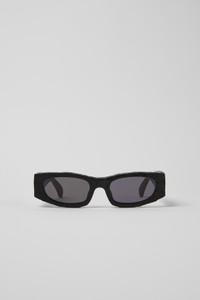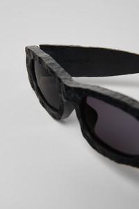 Black HIRMU sunglasses feature frames handcrafted from bio-circular acetate, fitted with 'poly renew' lenses made from 50% certified recycled plastic, offering 100% UV protection. Features Material HIRMU sunglasses feature frames handcrafted from bio-circular acetate, fitted with 'poly renew' lenses made from 50% certified recycled plastic, offering 100% UV protection. Color Black Features Rectangular frames with chunky temples handcrafted from textured acetate - Bio-circular acetate - Lens: Gray, CAT 3 - Poly renew lenses made with 50% recycled plastic - 7 barrel hinges and coated safety screws - Can be fitted with prescription lenses by an optometrist Can be fitted with prescription lenses by optometrist / Suitable for optical/ prescription conversion - Handmade in China - Every frame made = one tree planted Size and Fit One Size Unisex