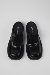 Black leather loafer slide with recycled OrthoLite® footbeds and rubber outsoles. Features Upper 100% Calfskin Color Black Outsole/Features 50% Rubber, 30% Natural Rubber, 20% Recycled Rubber Insole OrthoLite® Recycled™ Footbed