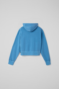 Blue hoodie in 100% mineral-dyed organic cotton with cut-out detail at back. Features Material 100% Organic Cotton Color Blue Features Cropped length Drawstring hood Pouch pocket Tonal logo embroidery at chest Size and Fit Unisex For a more cropped look, size down. Male model is 191 cm and wearing size M Female model is 178 cm and wearing size XS