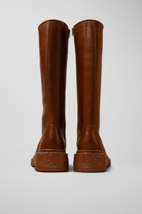 Brown calfskin leather high boots with organic cotton laces, OrthoLite® Recycled™ footbeds, and PU outsoles. Features Upper Calfskin leather Color Brown Outsole/Features Organic Cotton Laces 100% PU Insole OrthoLite® Recycled™ Non-Removable Footbed Lining 58% Calfskin 42% Recycled Polyester