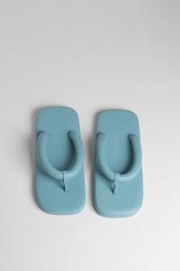 Turquoise blue leather flip-flop sandals with squared design and memory foam footbed. Comes with split-toe tabi socks made of embossed organic cotton in matching color. Features Upper: Sheepskin Color: Blue Outsole/Features: Rubber Lining: 100% Sheepskin