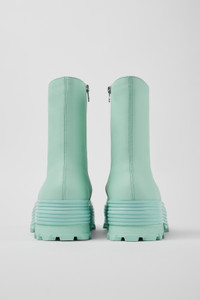 Light green vulcanized leather zip boots with toothed rubber outsoles and OrthoLite® cushioned footbeds. Features Upper Calfskin / Rubber Color Light Green Outsole/Features 100% Rubber Side zip Insole OrthoLite® for cushioning Lining 64% textile (45% recycled polyester - 35% recycled cotton - 20% viscose) 19% calfskin 17% recycled polyester