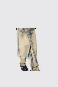 Sand-black skirt with a distressed asymmetrical hem. Italian Candiani denim made with responsibly sourced Blue Seed Cotton fibers and recycled garment waste for enhanced durability and a soft feel. Features Material 76% Organic Cotton, 24% Recycled Cotton Color Sand-Black Features - Zip and button fly Size and Fit Unisex Relaxed fit through hips and thighs A-line silhouette with slightly flared hem Asymmetric silhouette falling to mid-calf on one side and ankle length on the other