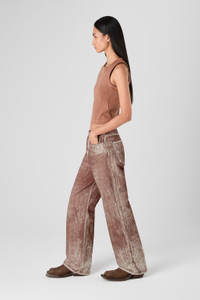 Terracotta jeans in quality Candiani Italian denim, made from a soft washed organic cotton, featuring seasonal paint print. Features Material 100% Organic Cotton Color Terracotta Features Zip fly Belt loops Regular waist 5-pocket construction Size and Fit Relaxed unisex fit. Straight leg, regular length. Male model is 191 cm and wearing size 30 Female model is 178 cm and wearing size 28