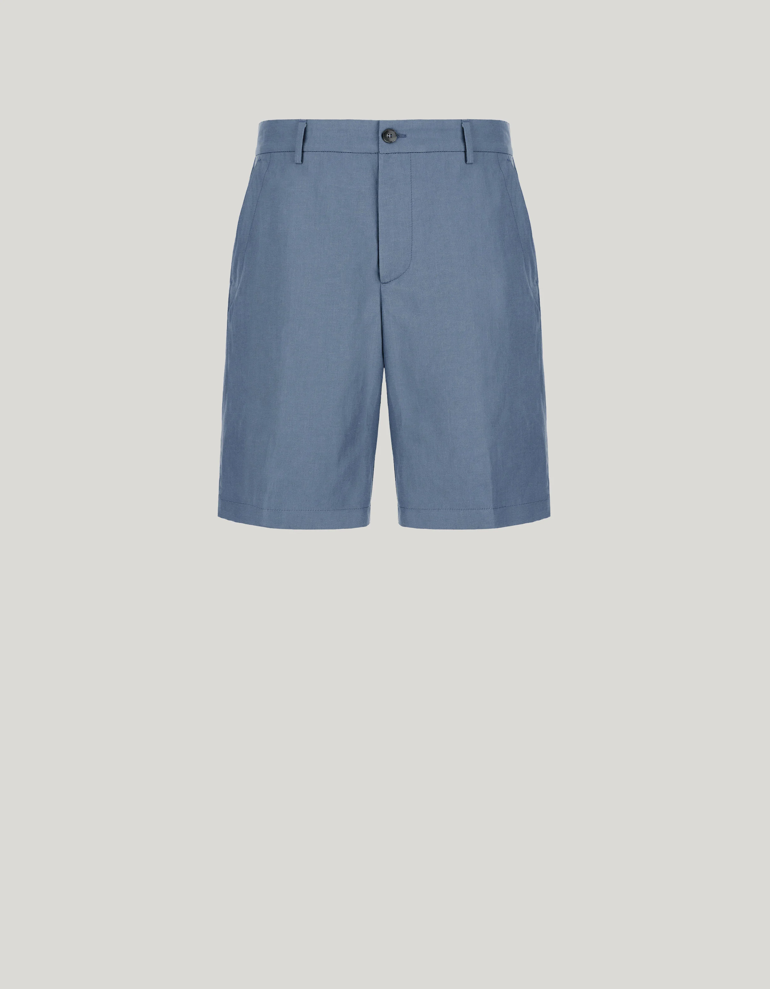 AIR FORCE BLUE LINEN AND SILK SHORTS