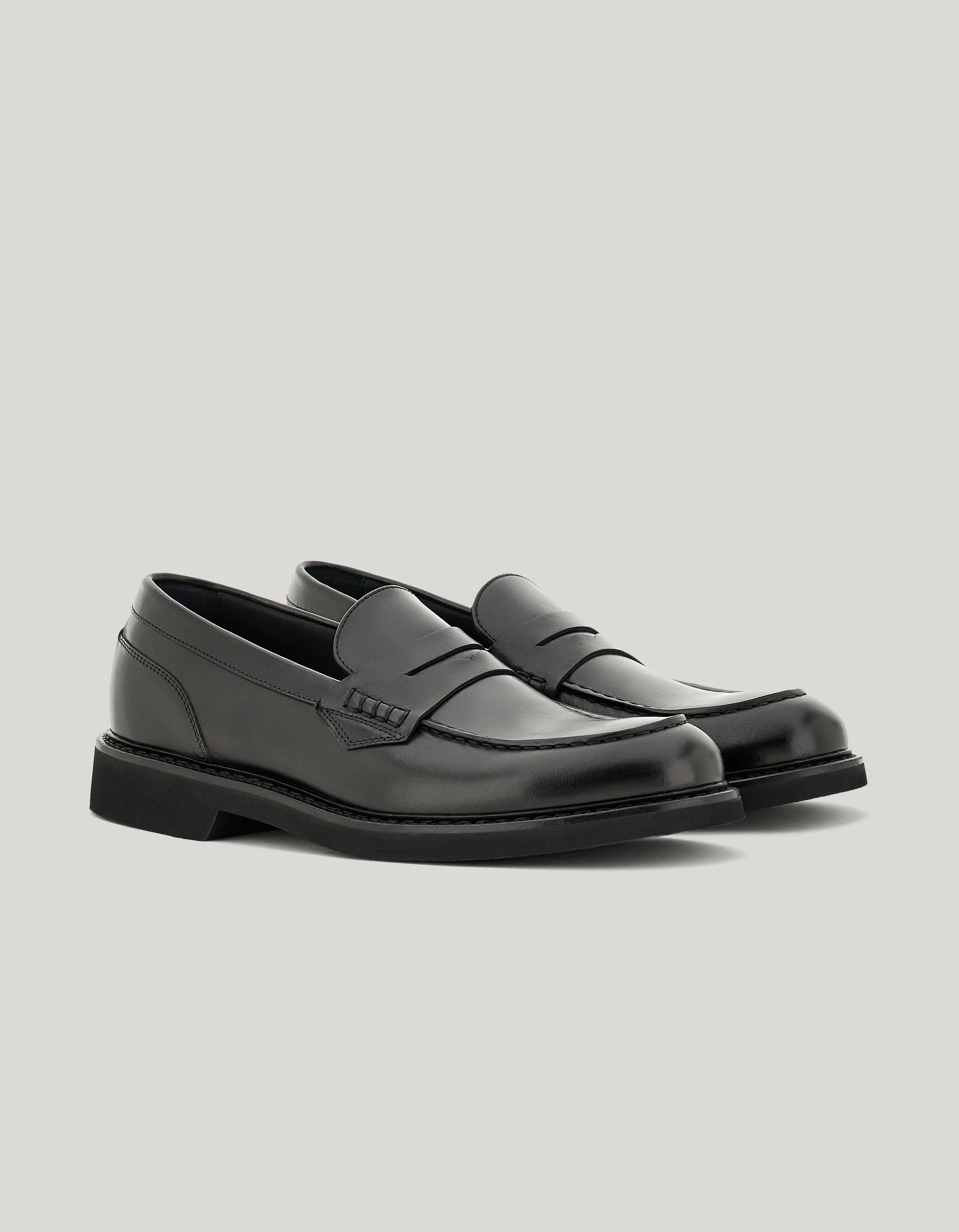 College moccasin loafers in high-quality cowhide leather with artisanal construction, ensuring durability, comfort, and impeccable fit. A perfect model for the modern man seeking versatile and reliable elegance. FABRICS AND CRAFTSMANSHIP - College moccasin loafers with covering - Rubber sole - Canali rivet - Blake construction - 100% Cowhide - Made in Italy