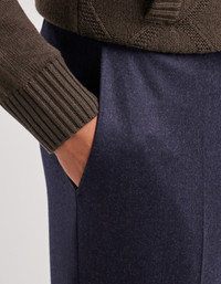 Pure wool flannel pants crafted to offer impeccable style and absolute comfort. The regular fit allows freedom of movement without sacrificing the elegance of clean lines. An essential garment for those who appreciate quality materials and want a versatile look that can adapt to any occasion with understated sophistication. FABRICS AND CRAFTSMANSHIP - Pleatless pants - American-style pockets and two welted back pockets - Hem 19.5 cm - 100% wool - Made in Italy CARE Do not wash with water Do not bleach Normal steam or dry iron on low (150°) Dry clean with perchlorethylene Do not tumble dry FIT Regular fit The model is wearing a size 48 The model measures: Height: 186 cm (73.2 in) Chest: 81 cm (31.9 in) Waist: 70 cm (27.6 in) Hips: 82 cm (32.3 in)