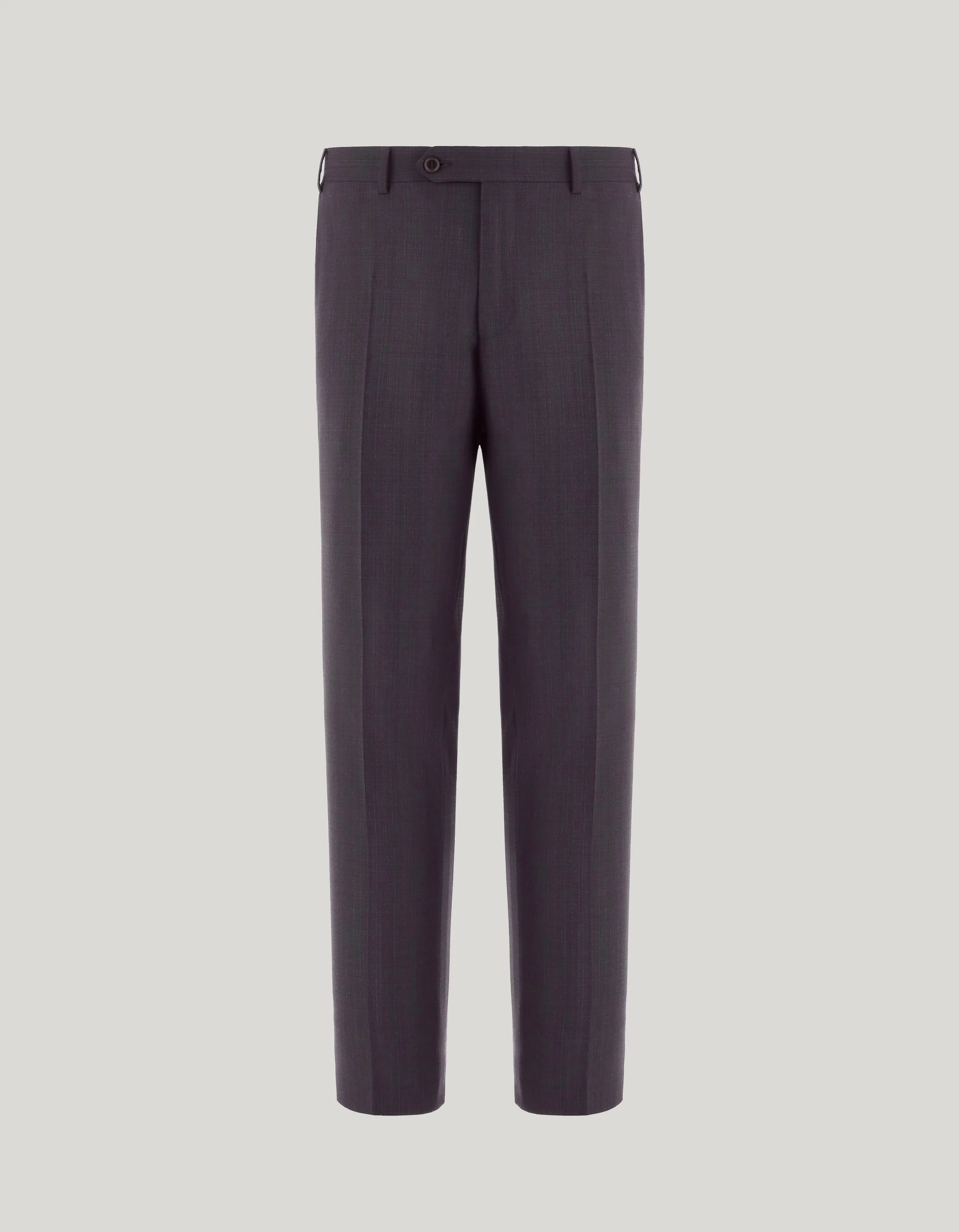 Pants made of Impeccabile pure wool, a high quality fabric that always ensures an impeccable appearance thanks to its ability to resist wrinkles. A symbol of timeless refinement and characterized by the regular fit, they prove to be a versatile and well-groomed garment, perfect for those who wish to face both formal engagements and more informal occasions with elegance. FABRICS AND CRAFTSMANSHIP - Pleatless pants - American-style pockets and two welted back pockets - Hem 19.5 cm - 100% wool - Made in Italy CARE Do not wash with water Do not bleach Normal steam or dry iron on low (150°) Dry clean with perchlorethylene Do not tumble dry FIT Regular fit The model is wearing a size 48 The model measures: Height: 186 cm (73.2 in) Chest: 81 cm (31.9 in) Waist: 70 cm (27.6 in) Hips: 82 cm (32.3 in)