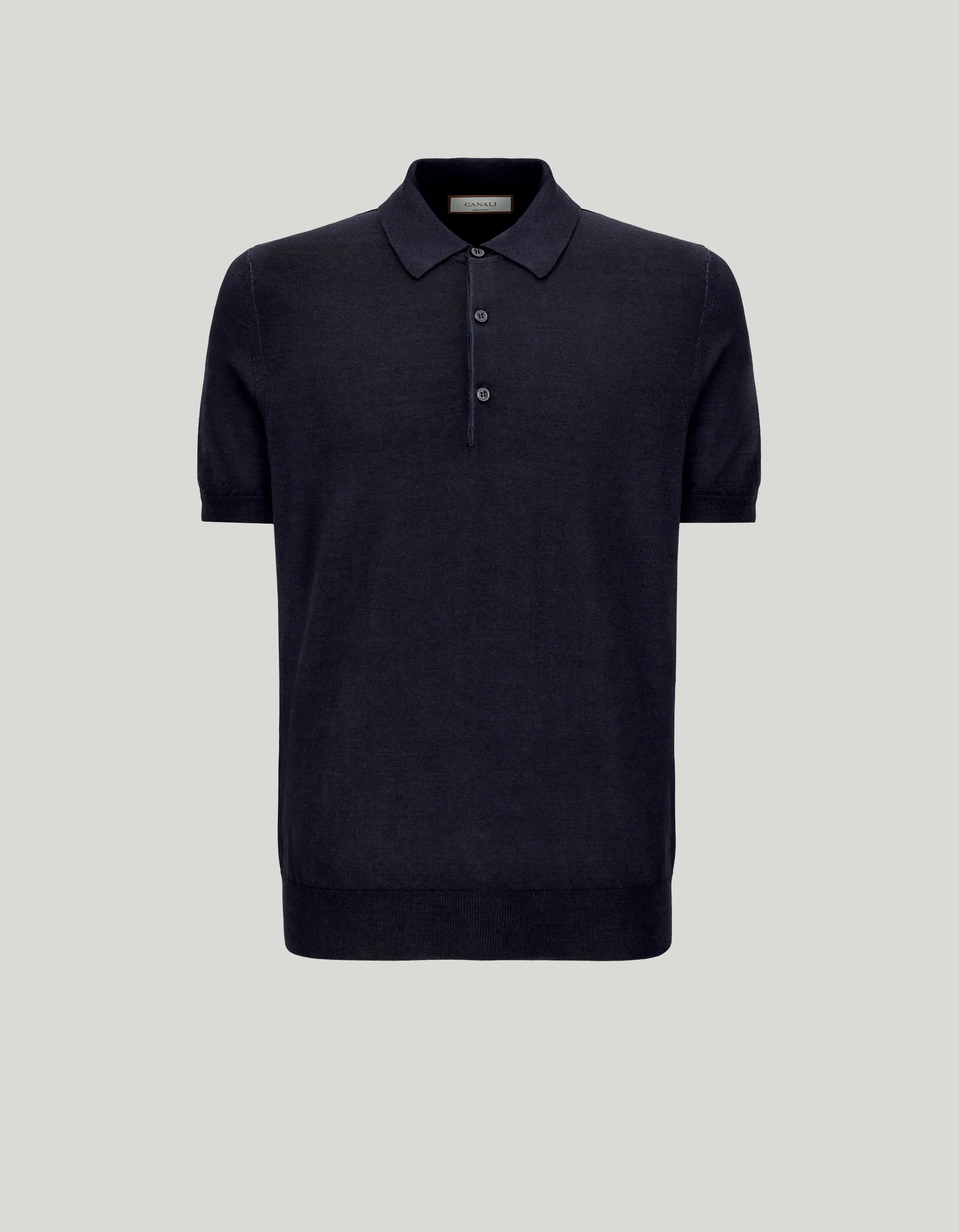 CANALI NUVOLA DARK NAVY POLO SHIRT IN WOOL AND SILK