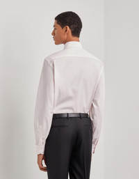 Regular fit cotton poplin shirt with refined elegance, an ideal choice for those seeking uncompromising style. The fine fabric ensures durability and a comfortable feel against the skin, while the fit and collar outline a sophisticated, contemporary silhouette. Perfect for any occasion, this shirt embodies the ideal balance between functionality and curated aesthetics, enriching the wardrobe with a distinctive and versatile piece. FABRICS AND CRAFTSMANSHIP - Formal shirt - Semi-spread collar - Collar height 4.2 cm - Removable collar stiffeners - Plain back with no wrinkles - Plain front with no placket - Semi-rounded cuff - 100% Cotton - Made in Italy CARE Machine wash max 30° - delicate cycle Do not bleach Normal steam or dry iron on low (110°) Gentle dry clean with perchlorethylene Do not tumble dry FIT Regular fit The model is wearing a size 48 The model measures: Height: 186 cm (73.2 in) Chest: 81 cm (31.9 in) Waist: 70 cm (27.6 in) Hips: 82 cm (32.3 in)