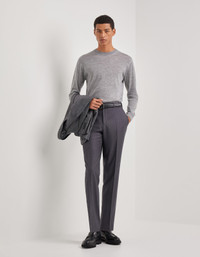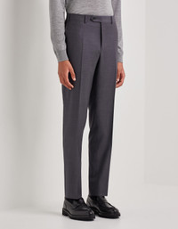 Pants made of Impeccabile pure wool, a high quality fabric that always ensures an impeccable appearance thanks to its ability to resist wrinkles. A symbol of timeless refinement and characterized by the regular fit, they prove to be a versatile and well-groomed garment, perfect for those who wish to face both formal engagements and more informal occasions with elegance. FABRICS AND CRAFTSMANSHIP - Pleatless pants - American-style pockets and two welted back pockets - Hem 19.5 cm - 100% wool - Made in Italy CARE Do not wash with water Do not bleach Normal steam or dry iron on low (150°) Dry clean with perchlorethylene Do not tumble dry FIT Regular fit The model is wearing a size 48 The model measures: Height: 186 cm (73.2 in) Chest: 81 cm (31.9 in) Waist: 70 cm (27.6 in) Hips: 82 cm (32.3 in)