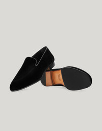 Soft velvet slip-ons embellished with refined leather piping and invisible stitching. The elegant colour scheme is combined with leather soles for a chic and graceful twist. Ideal to elevate the leisure looks of dynamic men with casual elegance. FABRICS AND CRAFTSMANSHIP - Velvet slip-ons with leather piping, leather soles and rubber half-soles - Calfskin lining - Calfskin insoles - Made in Italy