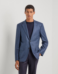 The tailored perfection of our silk and cashmere jacket makes it the ideal choice for lovers of timeless elegance. This single-breasted two-button model stands out for its houndstooth pattern, which enhances the silhouette with a perfect balance between comfort and style. Made to last, it is an essential item in every man's wardrobe. Refined and functional, it represents the epitome of contemporary sophistication. FABRICS AND CRAFTSMANSHIP - Single-breasted two-button jacket - Welted pockets with flap and slit breast pocket - This garment does not come with buttons or buttonholes at the end of the sleeves, allowing the customer to customize the length of the sleeves - Jacket length 75 cm in size 50 - 53% silk 47% cashmere - Made in Italy CARE Do not wash with water Do not bleach Normal steam or dry iron on low (150°) Dry clean with perchlorethylene Do not tumble dry FIT Regular fit In the Contemporary model, the length of the jacket is regular, with well-defined shoulders but with thin shoulder pads, and standard lapels. The model is wearing a size 48 The model measures: Height: 186 cm (73.2 in) Chest: 81 cm (31.9 in) Waist: 70 cm (27.6 in) Hips: 82 cm (32.3 in)