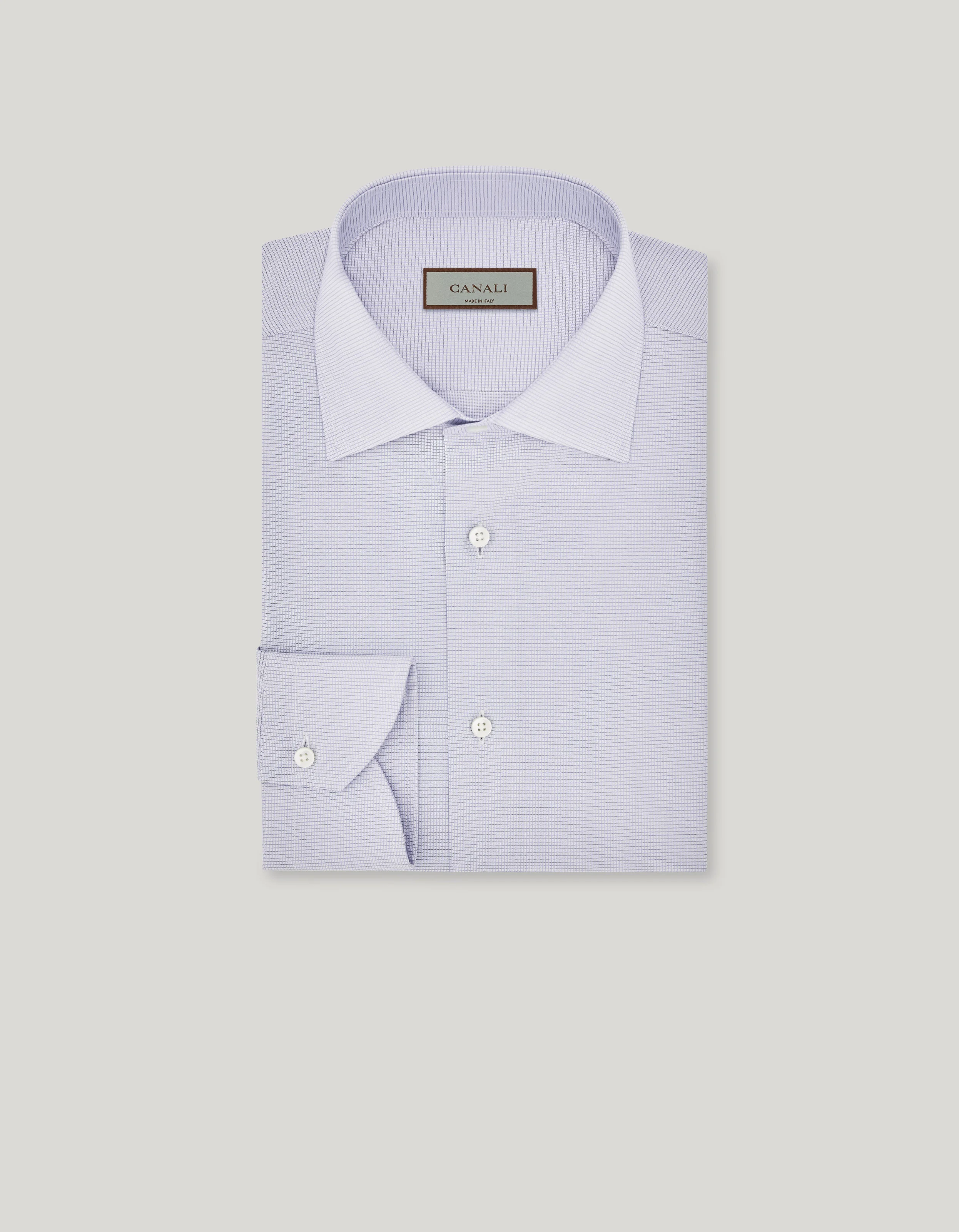 Formal men's shirt with an flawless style, made of Impeccabile micro-checkered cotton, a high-quality fabric whose ability to resist wrinkling gives a consistently impeccable appearance. The regular fit offers uncompromising comfort, while the collar lends a touch of versatility, casually adapting to any occasion. A menswear masterpiece that combines functionality and dynamic style, the ideal choice for the contemporary man who doesn't want to give up everyday elegance. FABRICS AND CRAFTSMANSHIP - Formal shirt - Impeccabile - Semi-spread collar - Collar height 4.2 cm - Removable collar stiffeners - Plain back with no wrinkles - Plain front with no placket - Semi-rounded cuff - 100% Cotton - Made in Italy CARE Machine wash max 30° - delicate cycle Do not bleach Normal steam or dry iron on low (110°) Gentle dry clean with perchlorethylene Do not tumble dry FIT Regular fit The model is wearing a size 48 The model measures: Height: 186 cm (73.2 in) Chest: 81 cm (31.9 in) Waist: 70 cm (27.6 in) Hips: 82 cm (32.3 in)
