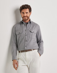 Ideal for those seeking comfort and contemporary style, this cotton and cashmere blend casual shirt offers softness and a fluid fit. Thoughtful details and a relaxed silhouette make it a versatile piece, perfect for a distinctive and sophisticated casual look. FABRICS AND CRAFTSMANSHIP - Casual shirt - Chest pockets - Collar height 4 cm - Front with placket - 95% Cotton 5% Cashmere - Made in Italy CARE Machine wash max 30° Do not bleach Normal steam or dry iron on low (110°) Do not dry clean Do not tumble dry FIT Relaxed fit The model is wearing a size 50 The model measures: Height: 185 cm (72.8 in) Chest: 100 cm (39.4 in) Waist: 79 cm (31.1 in) Hips: 95 cm (37.4 in)