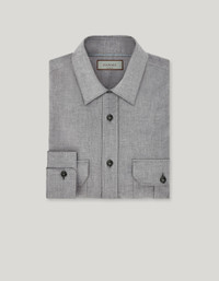 LIGHT GRAY MELANGE RELAXED FIT COTTON AND CASHMERE BLEND CASUAL SHIRT