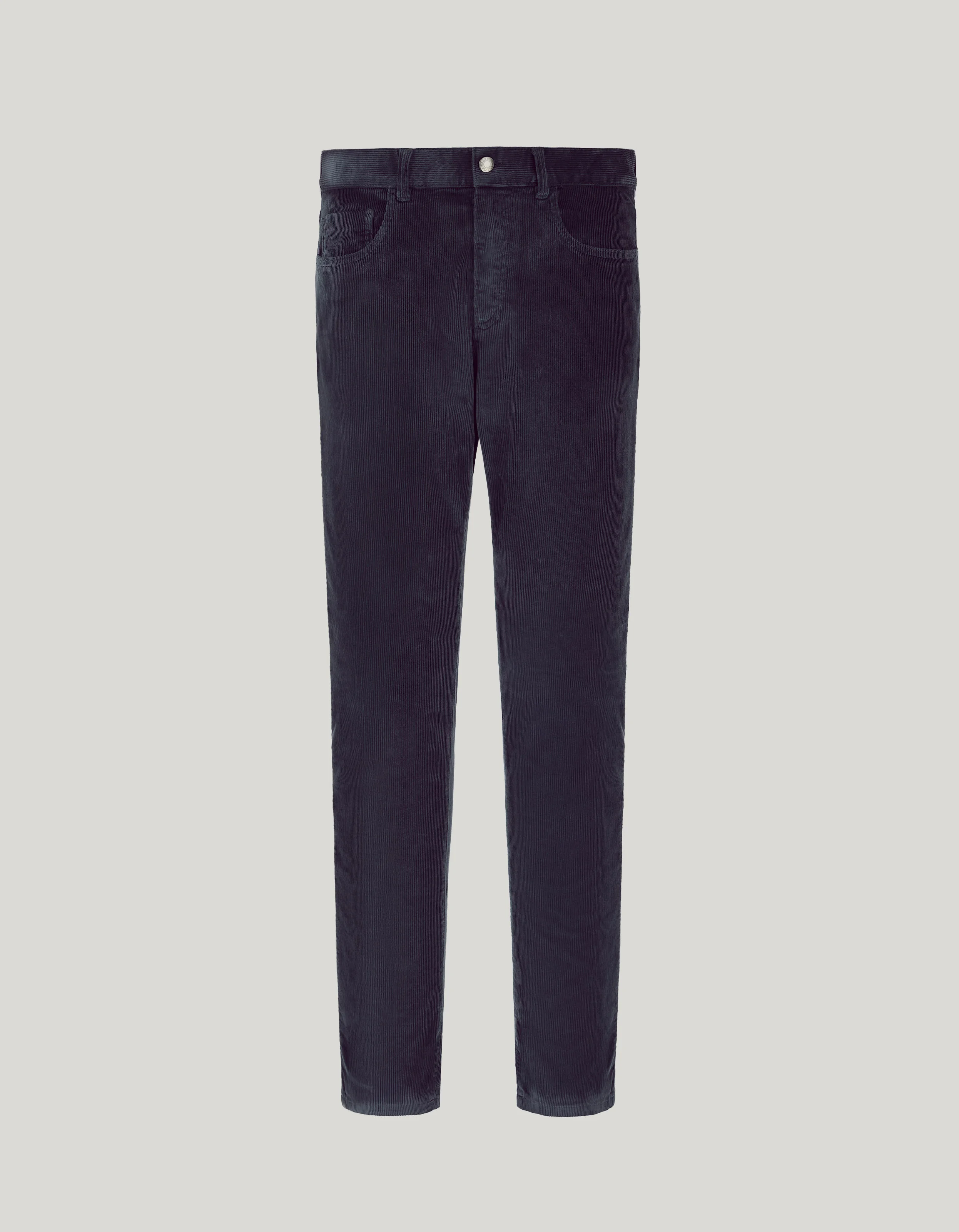 Soft-touch corduroy five-pocket regular fit pants in traditional hues, an expression of timeless elegance combined with maximum comfort. The softness of velvet combined with a balanced fit enhances the figure while maintaining maximum freedom of movement. An essential garment for those who appreciate fine materials and refined style, suitable for every occasion in cold weather. FABRICS AND CRAFTSMANSHIP - Five-pocket pants - Regular fit - Central fastening with button - Back patch pockets - Washable genuine leather back strap label - Hem 19 cm - Garment-dyed comfort soft touch corduroy - 74% Cotton 24% Modal 2% Elastane - Made in Italy CARE Machine wash max 30° - delicate cycle Do not bleach Normal steam or dry iron on low (110°) Gentle dry clean with perchlorethylene Do not tumble dry FIT Regular fit The model is wearing a size 48 The model measures: Height: 186 cm (73.2 in) Chest: 81 cm (31.9 in) Waist: 70 cm (27.6 in) Hips: 82 cm (32.3 in)