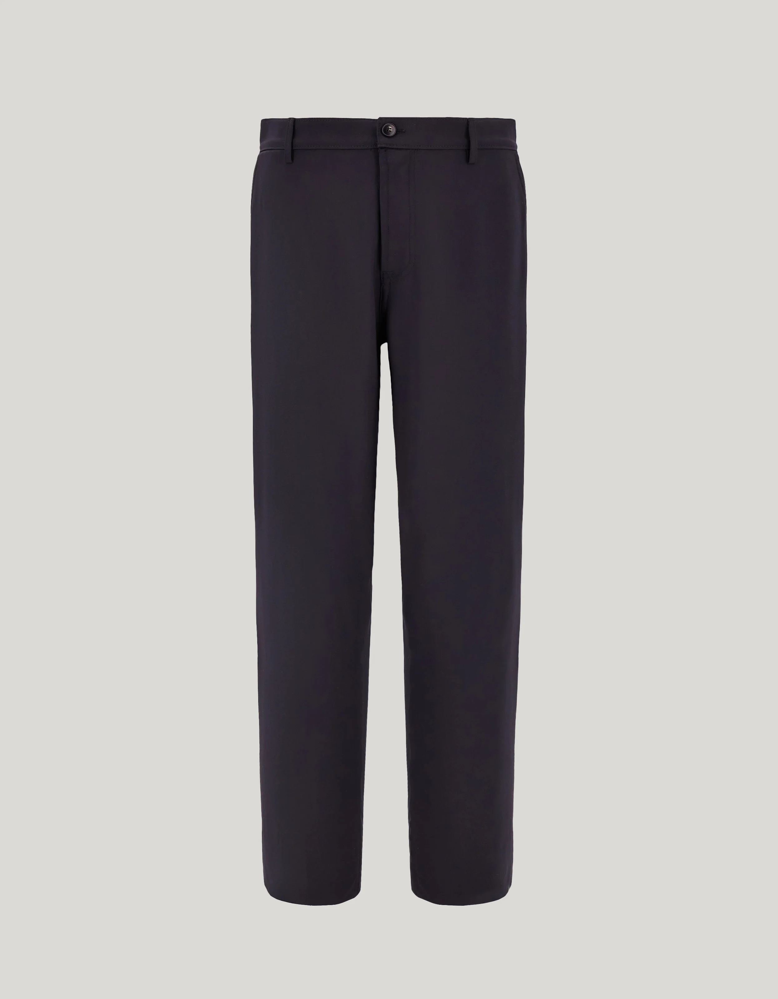 Travel stretch wool chinos with a tapered fit, designed to combine elegance and everyday functionality. The stretchy, wrinkle-resistant fabric ensures dynamic comfort and an always polished look, while the essential construction expresses an understated, contemporary style. A versatile model for flawless elegance in every occasion. FABRICS AND CRAFTSMANSHIP - Flat-front chinos - Tapered fit - Central fastening with visible button - Double welt back pockets with exposed button - Hem 19 cm - Woven 130’s stretch wool - TRAVEL - 97% Wool 3% Elastane - Made in Italy CARE Do not wash with water Do not bleach Normal steam or dry iron on low (110°) Gentle dry clean with perchlorethylene Do not tumble dry FIT The model is wearing a size 50 The model measures: Height: 185 cm (72.8 in) Chest: 100 cm (39.4 in) Waist: 79 cm (31.1 in) Hips: 95 cm (37.4 in)