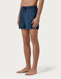 Perfect for sunny days characterised by lightness and comfort, these boxer shorts feature a refined printed fabric effect. Embellished with a dual-tone ribbon and a pocket on the back, they combine practicality with a modern taste. For the dynamic man who never compromises on style in his leisure time. FABRICS AND CRAFTSMANSHIP - Swimsuit - Logo label - Length: 38 cm - 100% polyester - Made in Italy CARE Machine wash max 30° - delicate cycle Do not bleach Normal steam or dry iron on low (110°) Dry clean with perchlorethylene Do not tumble dry FIT The model is wearing a size 48 The model measures: Height: 190 cm Chest: 92 cm Waist: 75 cm Hips: 92 cm