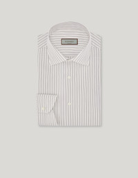 Cotton silk shirt designed to embody casual elegance with its contemporary sophistication. The delicate mix of fibers creates a fabric that combines softness and strength, while the regular fit and collar harmoniously enhance the figure. The shirt perfectly meets the needs of those seeking an elegant yet functional solution, ideal for both formal gatherings and less demanding occasions. FABRICS AND CRAFTSMANSHIP - Formal shirt - Semi-spread collar - Collar height 4.2 cm - Removable collar stiffeners - Plain back with no wrinkles - Plain front with no placket - Semi-rounded cuff - 68% Cotton 32% Silk - Made in Italy CARE Do not wash with water Do not bleach Normal steam or dry iron on low (110°) Gentle dry clean with perchlorethylene Do not tumble dry FIT Regular fit The model is wearing a size 48 The model measures: Height: 189 cm (74.4 in) Chest: 98 cm (38.6 in) Waist: 82 cm (32.3 in) Hips: 97 cm (38.2 in)
