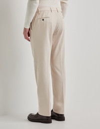 Regular-fit chinos in cashmere gabardine, an expression of relaxed and sophisticated elegance. The soft texture and clean, dartless lines enhance the silhouette naturally, while the fine composition ensures superior comfort. Perfect for those seeking a polished presence in both formal and leisure settings. FABRICS AND CRAFTSMANSHIP - Dartless chinos - Regular fit - Fastening with side adjusters and button - Double welt back pockets with button - Hem 19 cm - Garment-dyed comfort cashmere blend gabardine - 95% Cotton 3% Cashmere 2% Elastane - Made in Italy CARE Machine wash max 30° - delicate cycle Do not bleach Normal steam or dry iron on low (110°) Gentle dry clean with perchlorethylene Do not tumble dry FIT Regular fit The model is wearing a size 50 The model measures: Height: 185 cm (72.8 in) Chest: 100 cm (39.4 in) Waist: 79 cm (31.1 in) Hips: 95 cm (37.4 in)