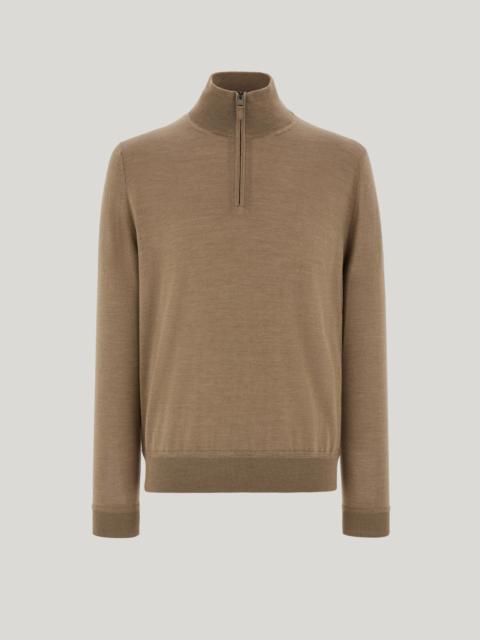 HAZELNUT MOCK-NECK IN WOOL, SILK AND CASHMERE BLEND WITH ZIP