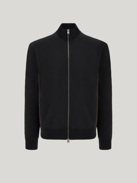 BLACK EXTRA-FINE MERINO WOOL SWEATSHIRT WITH PIPING