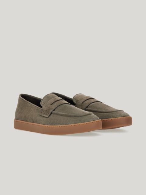 CIGAR SUEDE PENNY LOAFER WITH LEATHER-EFFECT RUBBER SOLE