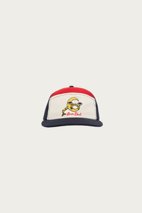 Brain Dead's waning crescent curved front 6-panel hat. - 80% Acrylic / 18% Wool - Navy Multi - Made in the U.S.A.