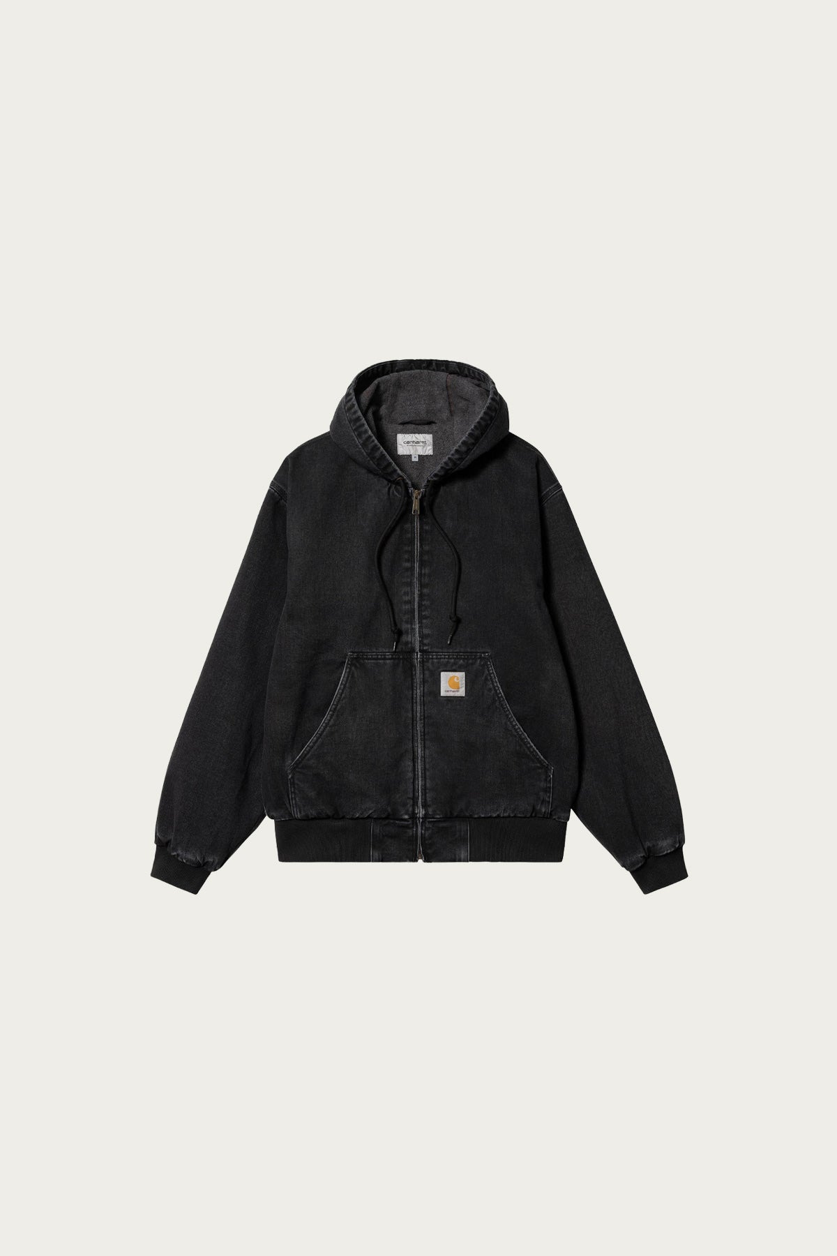 The OG Active Jacket is made of 12 oz organic cotton Dearborn Canvas. It is a heavyweight, insulating style cut in our original loose fit, and features a diamond-quilted lining, as well as a ribbed hem and cuffs. A kangaroo pocket, adjustable hood and zipped front fastening offer functional touches, while triple-stitch details provide extra durability. - 100% Organic Cotton 'Dearborn' Canvas, 12 oz - original loose fit - diamond quilted lined - inside chest pocket - triple stitched - adjustable hood - front closure with zip - kangaroo pocket - rib-knit cuffs and bottom band - personalized middle front slider - square label - Black Stone Canvas