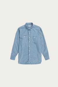 This version of EG's work shirt is a special piece with a hardy chambray. Made with such considered and historic details that the shirt has become iconic. Constructed with a fuller cut that lays so nicely; it is an instant favorite. Details include a spread collar, contrast button, cigarette pocket, notebook pocket, pencil slot, long side gusset, runners, reinforced elbows, and we could go on and on. This shirt is simply everything you'd want from a work shirt and will continue to be that years from today. If you've been looking for that perfect chambray, your hunt is over. - 100% Cotton - 4.5oz Cotton Chambray - Regular Fit - Spread Collar - Expanding Cigarette Pocket - Notebook Pocket - Pencil Slot - Large Side Gussets for Movement - Barrel Cuffs with Button Closure - Reinforced Elbows - Curved Hem - Made in New York City