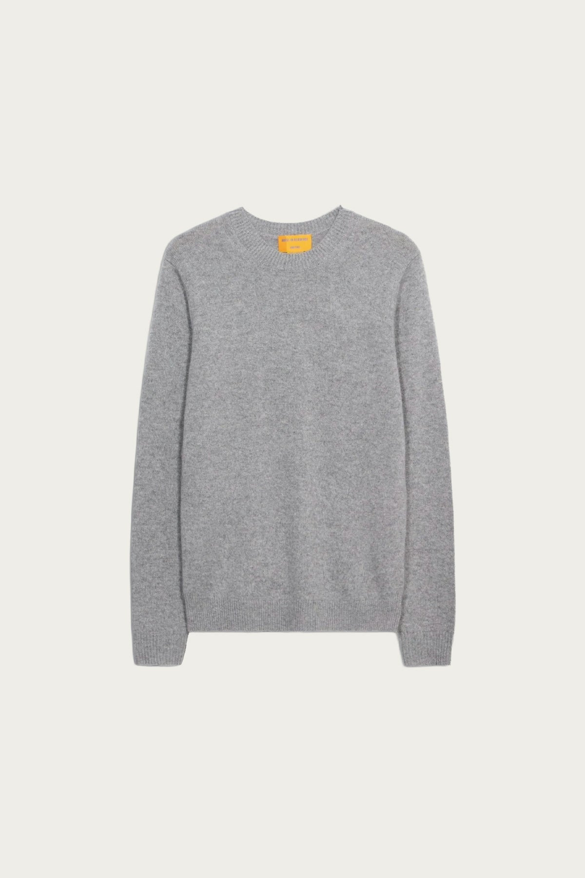A core Guest in Residence essential, the Allday Crew is crafted from 100% medium-weight cashmere with men’s sizing for a true-to-size fit. This classic cashmere crew neck sweater embodies timeless style and lasting quality — made to wear now and forever. - Medium-weight crew neck - Jersey body stitch - Signature GIR branding at center back - 100% cashmere - Heather Grey